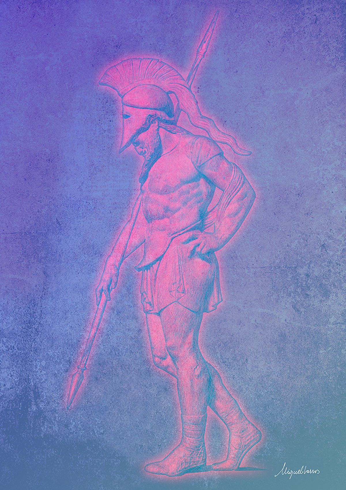 In this piece, I wanted to capture the duality of the Spartan warrior: strength and doubt, courage and reflection. I used vibrant pop art colors to give it a modern and energetic feel, while his pose invites contemplation of the weight of the decision. It's a piece that will fill any space with intensity and a touch of deep introspection. You'll feel the power in every glance!